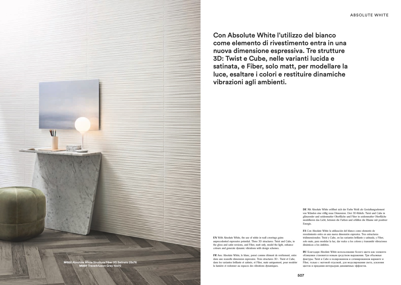 M022 Absolute White Struttura Fiber 3D Satinato 25x76