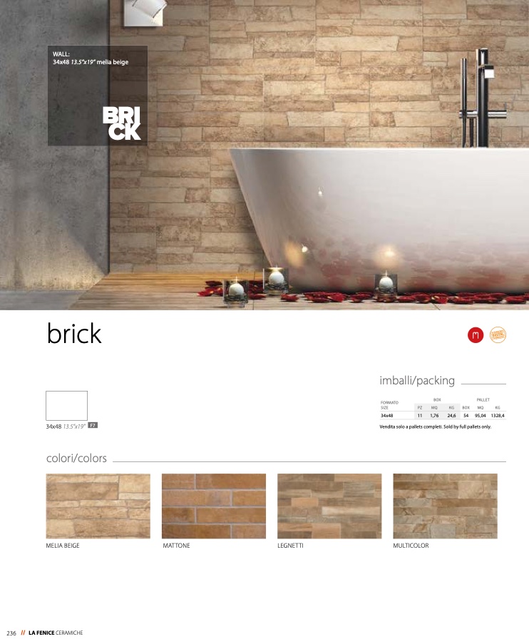 Vendita solo a pallets completi. Sold by full pallets only.