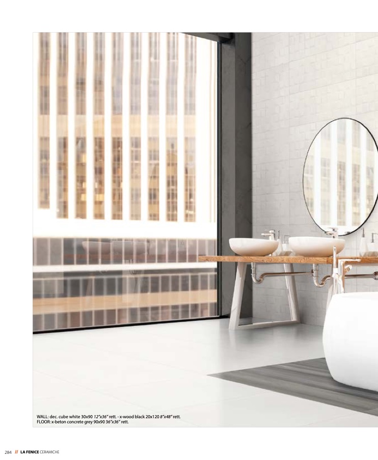 WALL: dec. cube white 30x90 12”x36” rett. - x-wood black 20x120 8”x48” rett.
