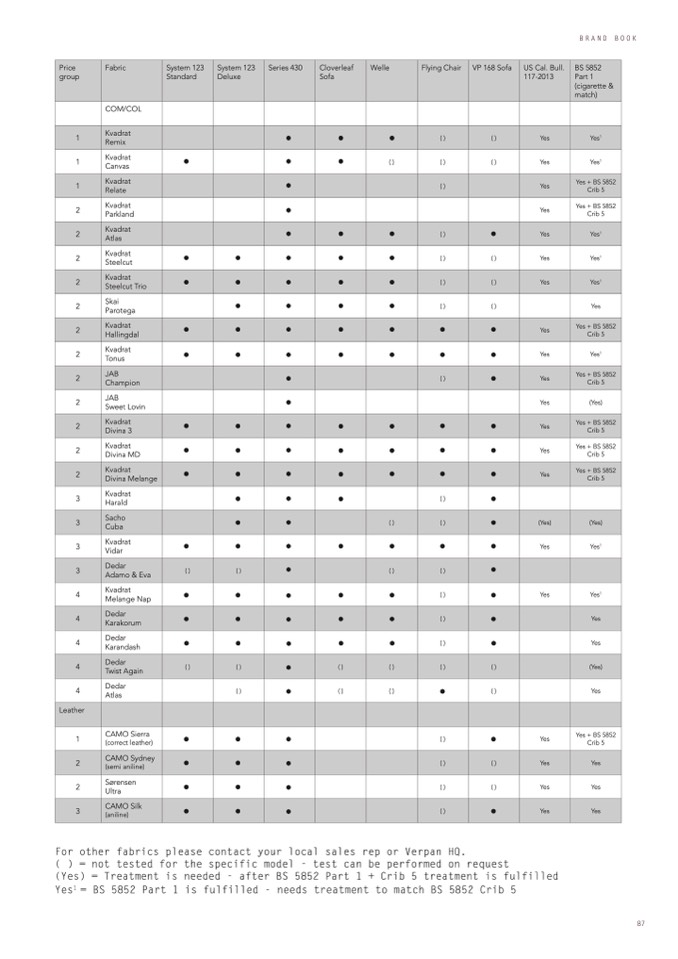 For other fabrics please contact your local sales rep or Verpan HQ.