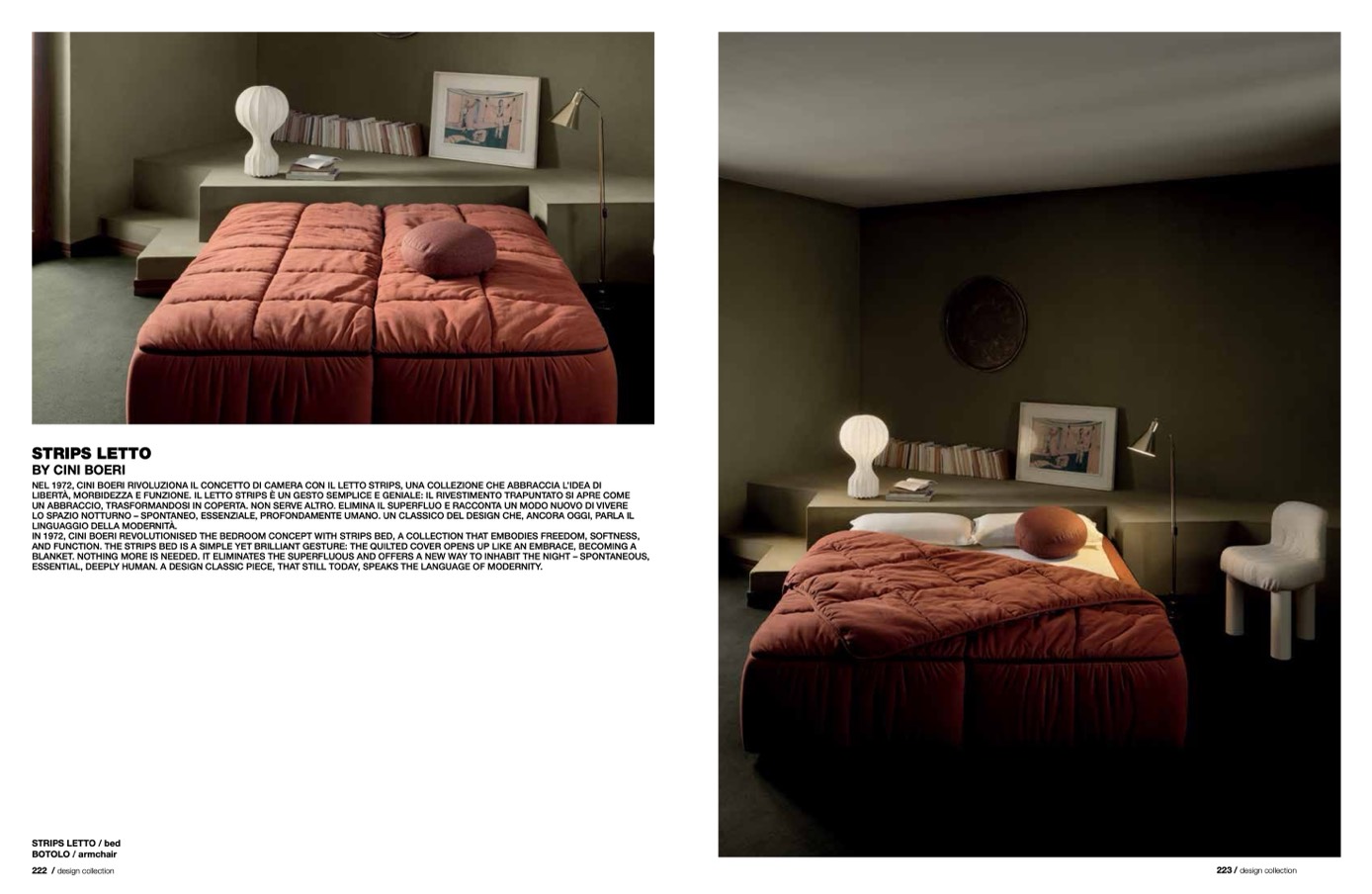 IN 1972, CINI BOERI REVOLUTIONISED THE BEDROOM CONCEPT WITH STRIPS BED, A COLLECTION THAT EMBODIES FREEDOM, SOFTNESS,