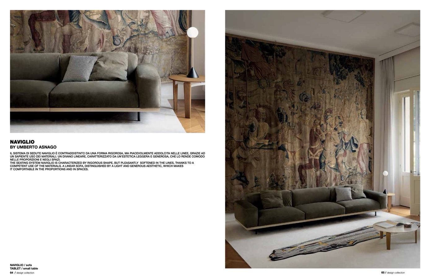 THE SEATING SYSTEM NAVIGLIO IS CHARACTERIZED BY RIGOROUS SHAPE, BUT PLEASANTLY SOFTENED IN THE LINES, THANKS TO A