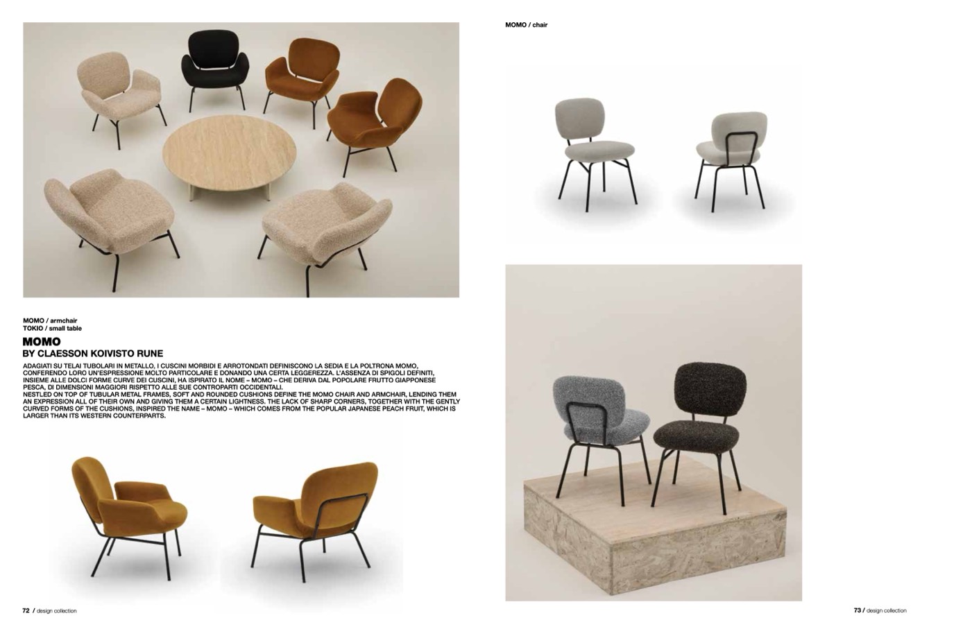 INSIEME ALLE DOLCI FORME CURVE DEI CUSCINI, HA ISPIRATO IL NOME – MOMO – CHE DERIVA DAL POPOLARE FRUTTO GIAPPONESE