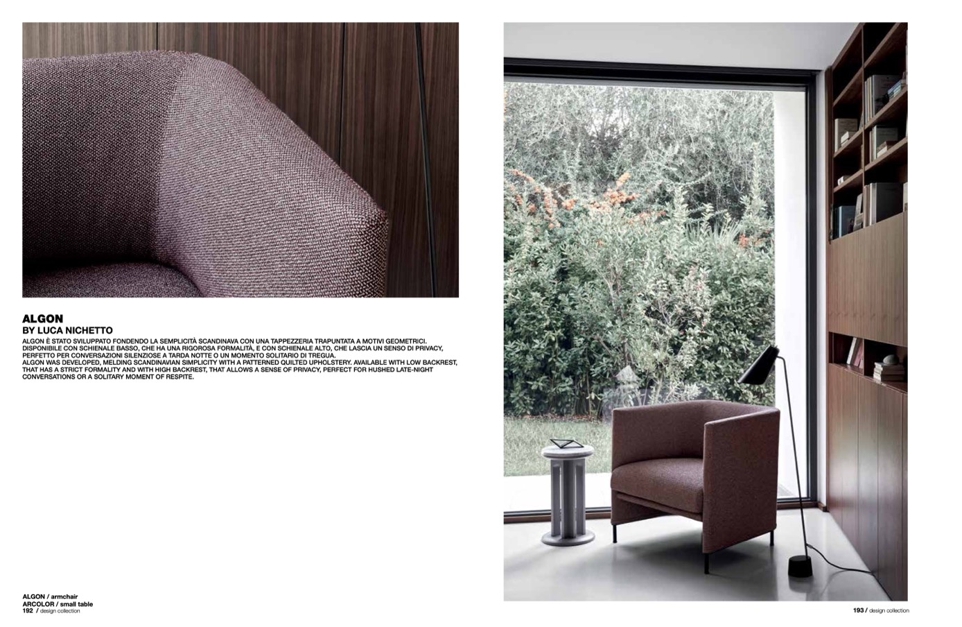ALGON WAS DEVELOPED, MELDING SCANDINAVIAN SIMPLICITY WITH A PATTERNED QUILTED UPHOLSTERY. AVAILABLE WITH LOW BACKREST,