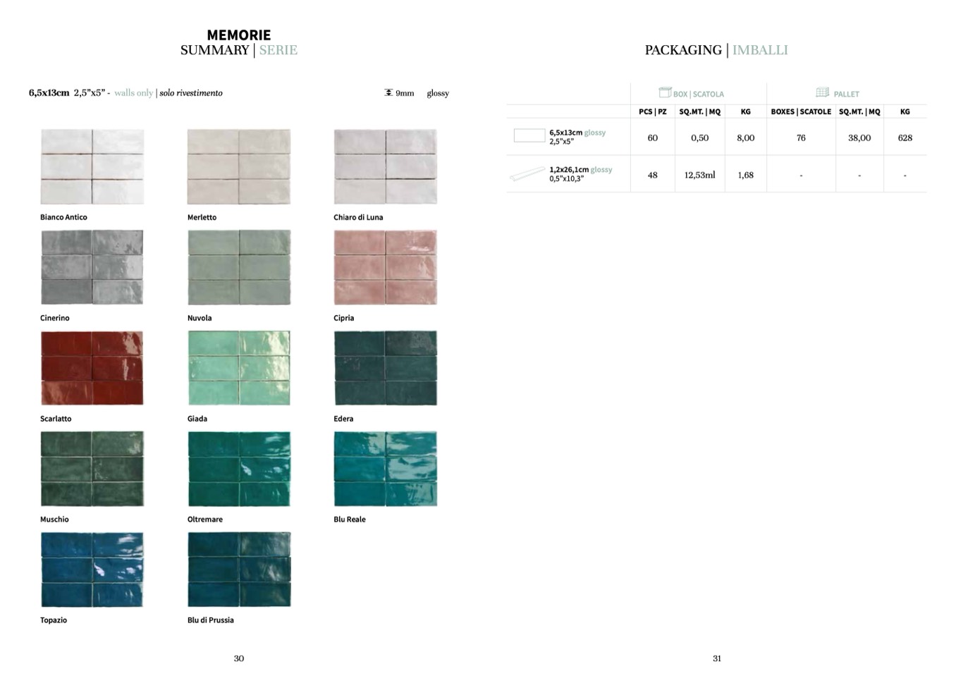 6,5x13cm 2,5”x5” - walls only | solo rivestimento