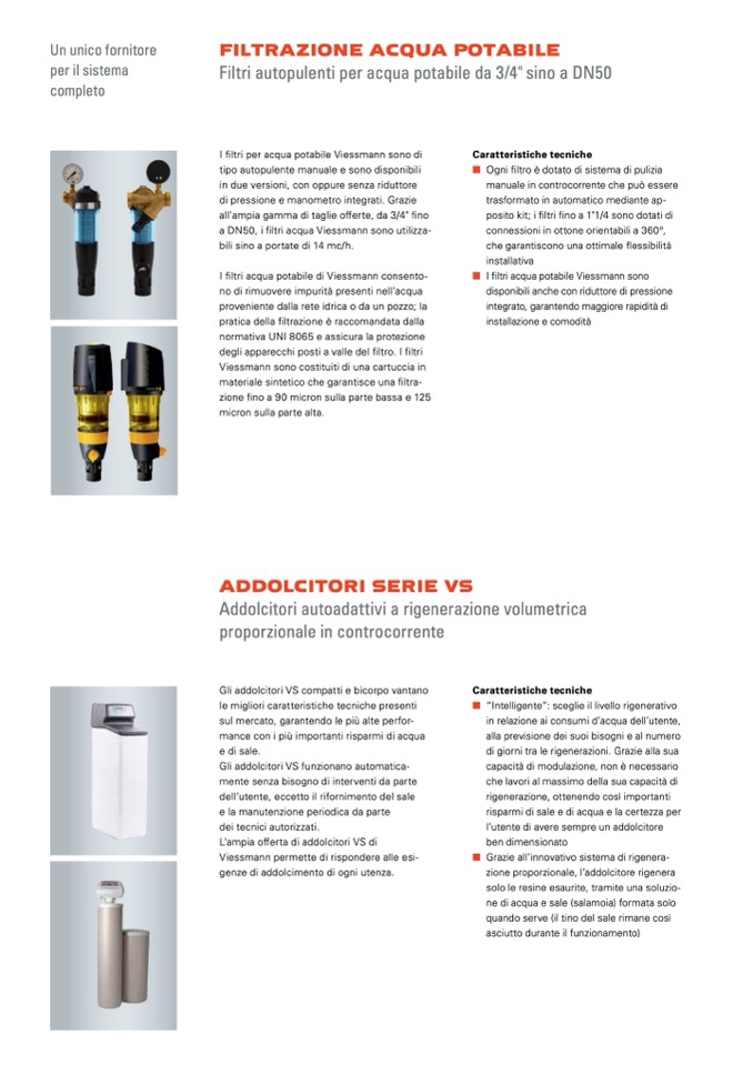 I filtri acqua potabile Viessmann sono