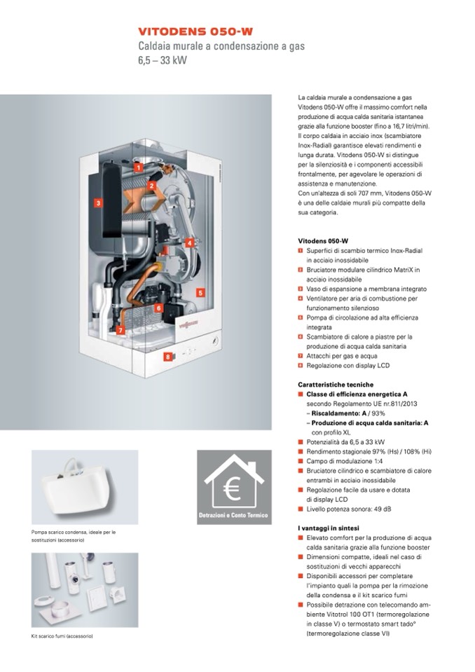 Con un’altezza di soli 707 mm, Vitodens 050-W