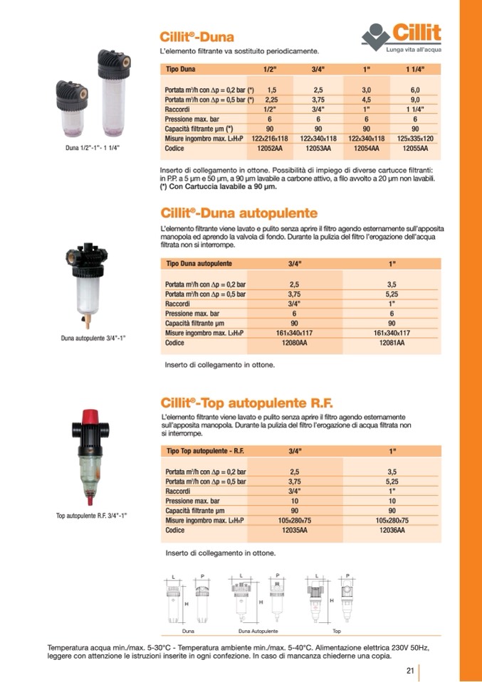 (*) Con Cartuccia lavabile a 90 μm.