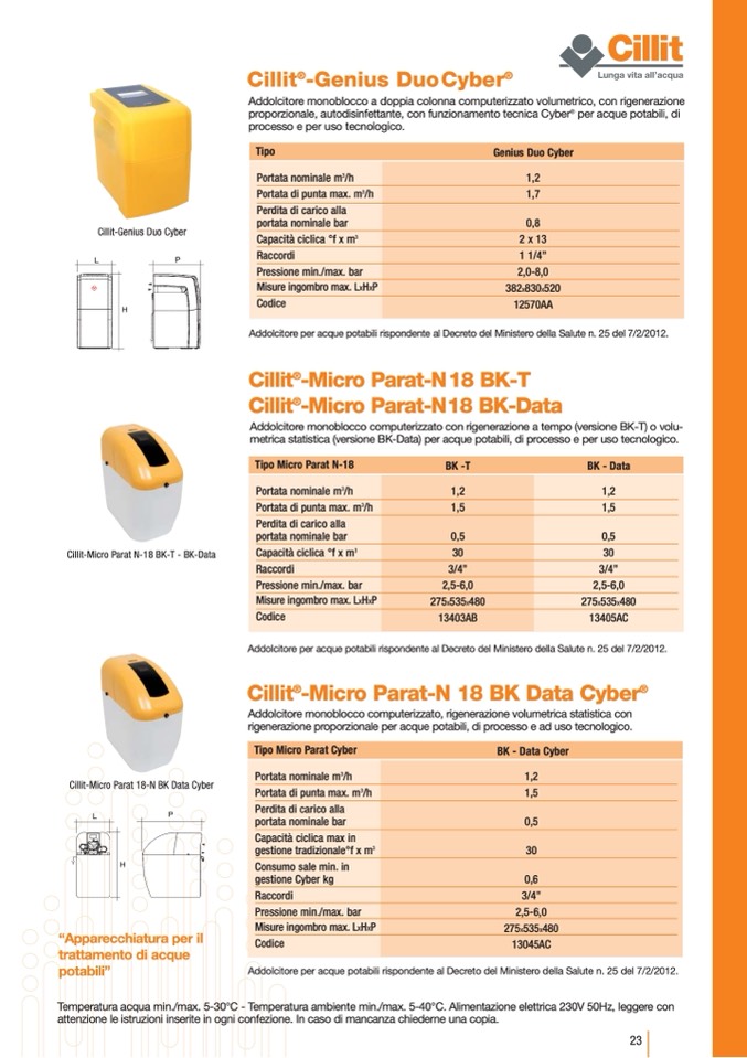 Addolcitore per acque potabili rispondente al Decreto del Ministero della Salute n. 25 del 7/2/2012.