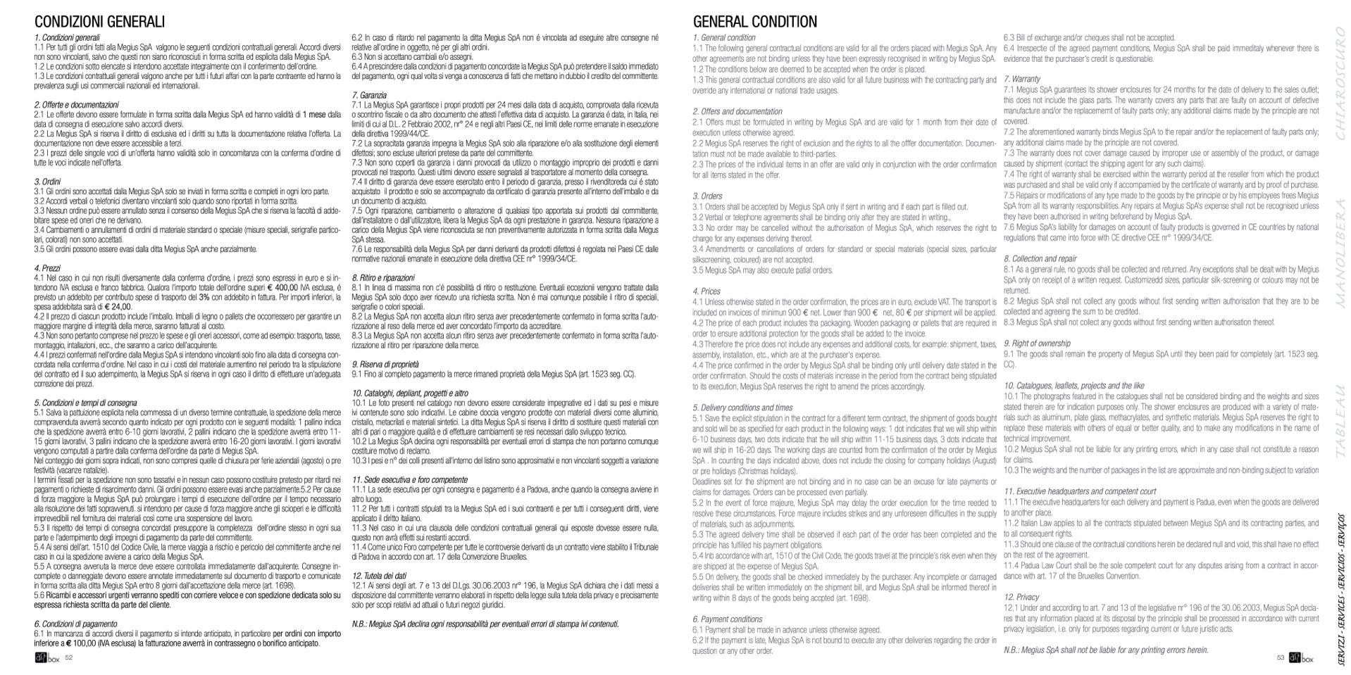 10.2 La Megius SpA declina ogni responsabilità per eventuali errori di stampa che non portanno comunque