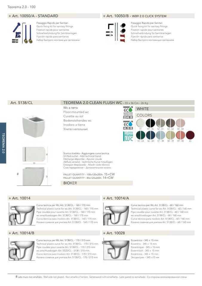 Curva tecnica per Wc Art. 5138/CL - 170 / 215 mm