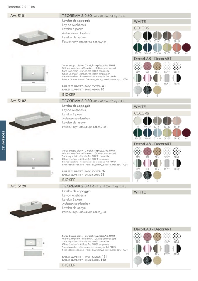 Senza troppo pieno - Consigliata piletta Art. 10034