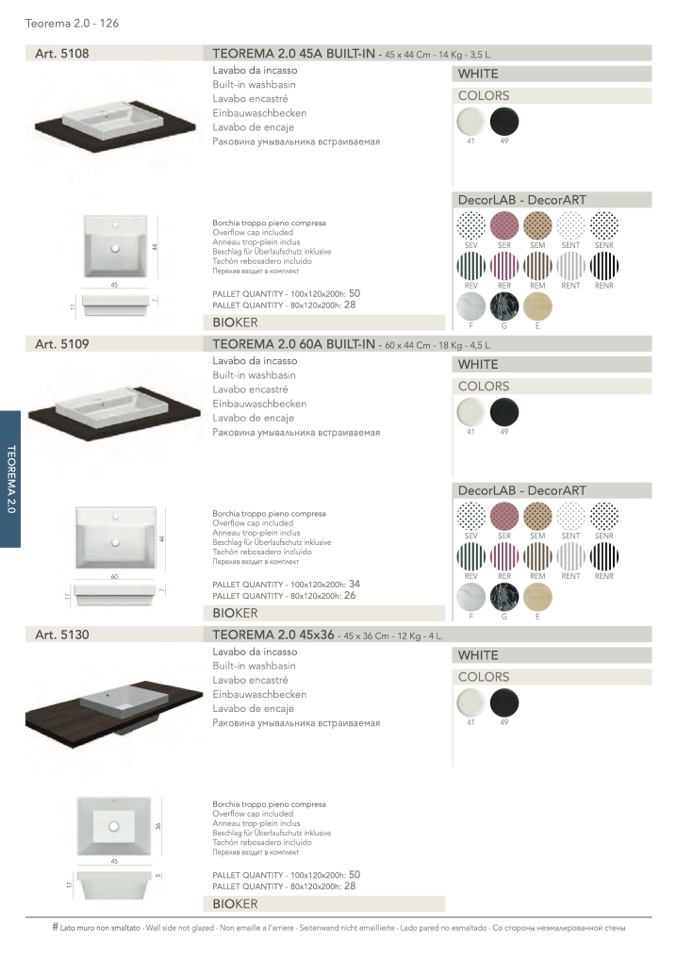 Lato muro non smaltato - Wall side not glazed - Non emaille a l’arriere - Seitenwand nicht emaillierte - Lado pared no esmaltado -