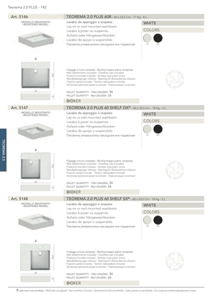 Lato muro non smaltato - Wall side not glazed - Non emaille a l’arriere - Seitenwand nicht emaillierte - Lado pared no esmaltado -