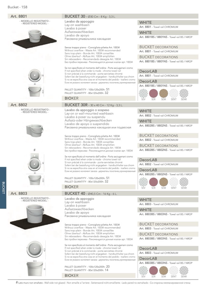 Senza troppo pieno - Consigliata piletta Art. 10034