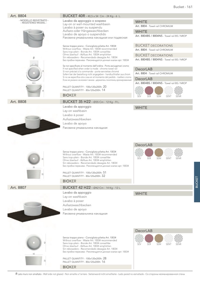 Senza troppo pieno - Consigliata piletta Art. 10034