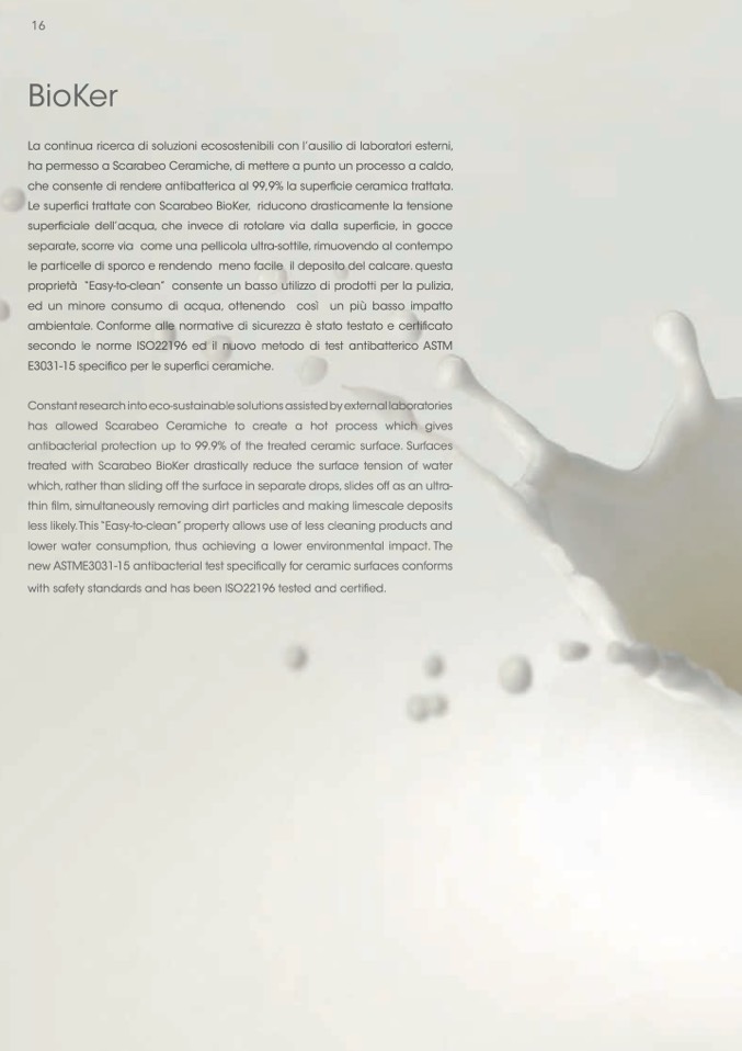 antibacterial protection up to 99.9% of the treated ceramic surface. Surfaces