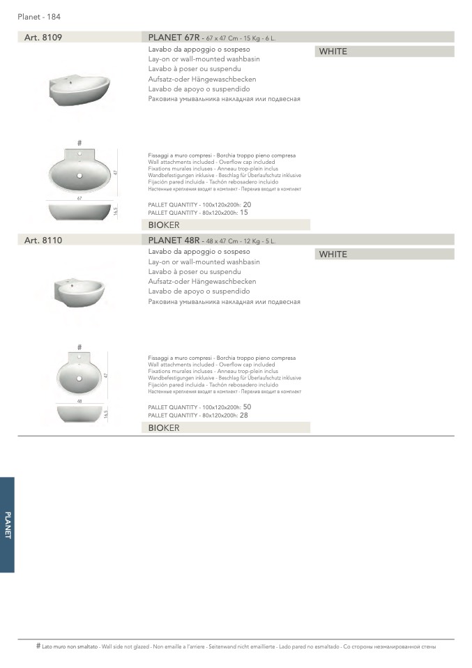 Lato muro non smaltato - Wall side not glazed - Non emaille a l’arriere - Seitenwand nicht emaillierte - Lado pared no esmaltado -