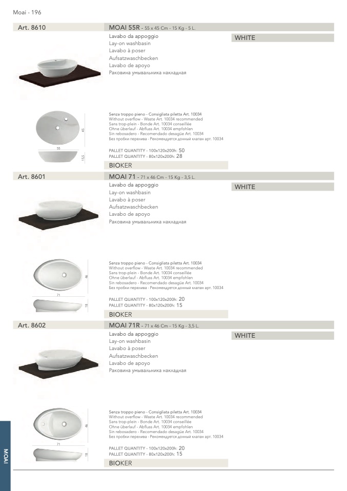 Senza troppo pieno - Consigliata piletta Art. 10034