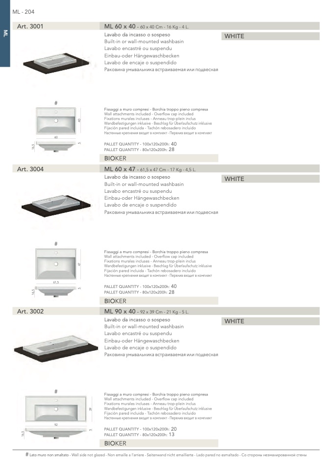 Lato muro non smaltato - Wall side not glazed - Non emaille a l’arriere - Seitenwand nicht emaillierte - Lado pared no esmaltado -