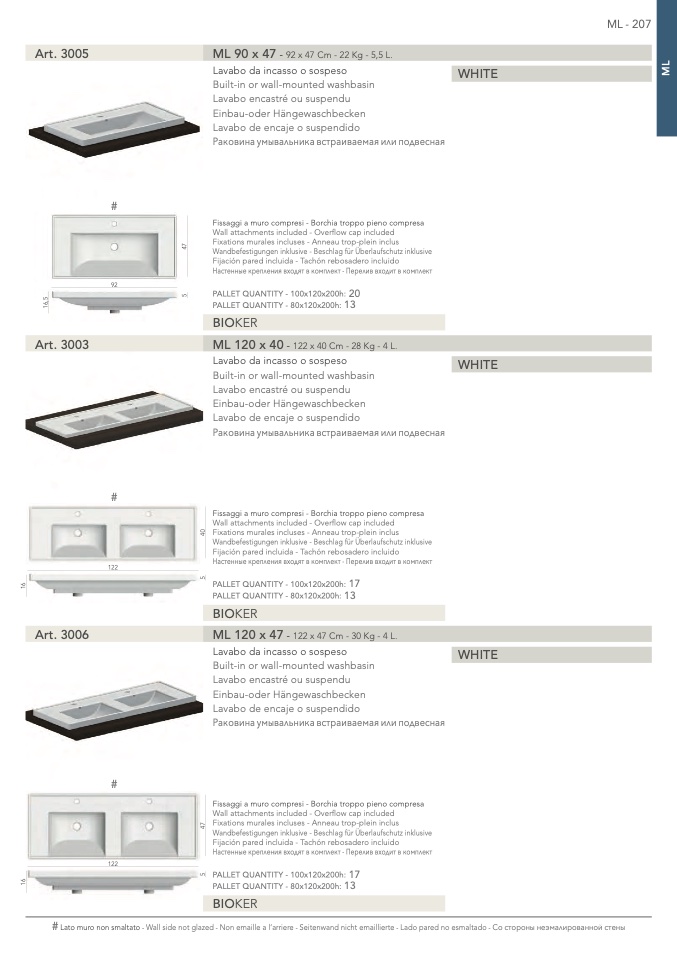 Lato muro non smaltato - Wall side not glazed - Non emaille a l’arriere - Seitenwand nicht emaillierte - Lado pared no esmaltado -