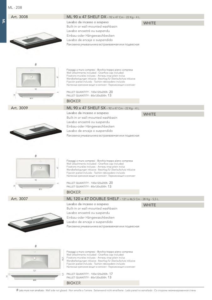 Lato muro non smaltato - Wall side not glazed - Non emaille a l’arriere - Seitenwand nicht emaillierte - Lado pared no esmaltado -