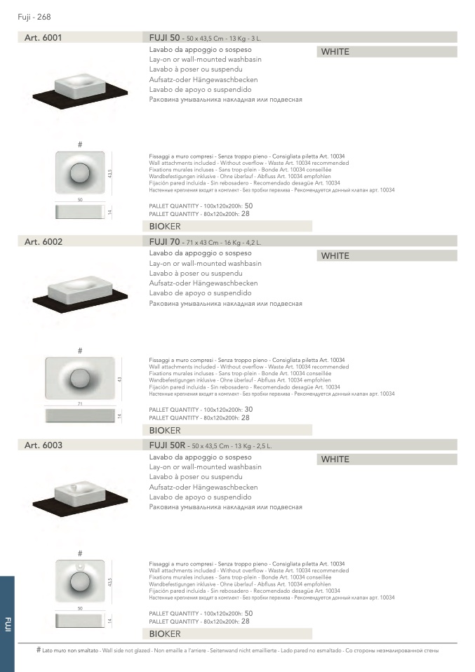 Fissaggi a muro compresi - Senza troppo pieno - Consigliata piletta Art. 10034