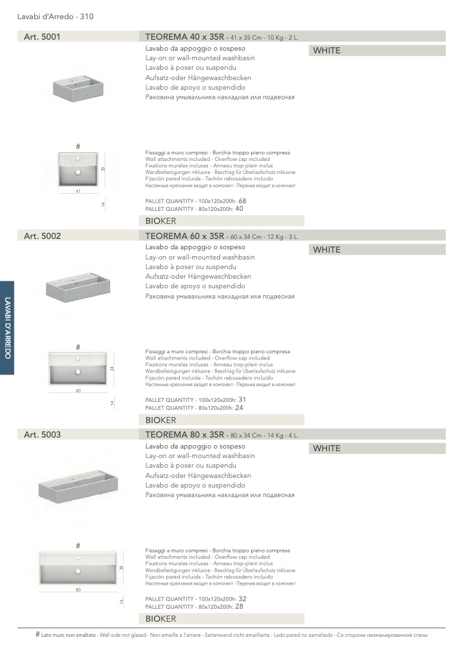 Lato muro non smaltato - Wall side not glazed - Non emaille a l’arriere - Seitenwand nicht emaillierte - Lado pared no esmaltado -