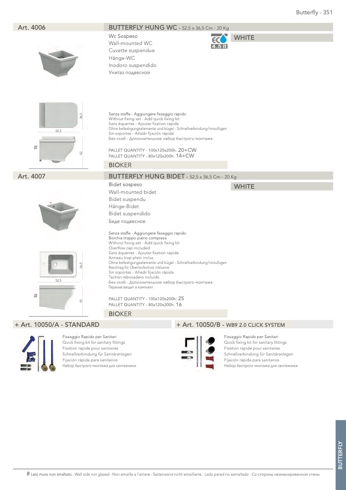 Lato muro non smaltato - Wall side not glazed - Non emaille a l’arriere - Seitenwand nicht emaillierte - Lado pared no esmaltado -