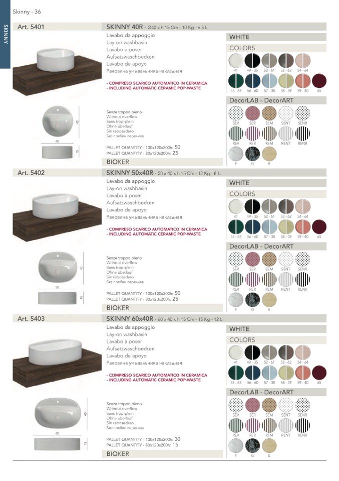 SKINNY 40R - Ø40 x h 15 Cm - 10 Kg - 6.5 L.