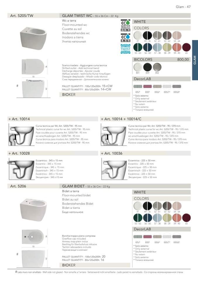 Lato muro non smaltato - Wall side not glazed - Non emaille a l’arriere - Seitenwand nicht emaillierte - Lado pared no esmaltado -