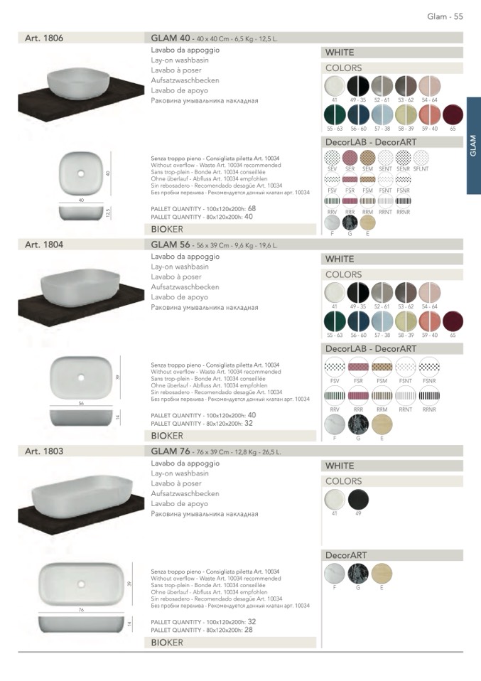 Senza troppo pieno - Consigliata piletta Art. 10034