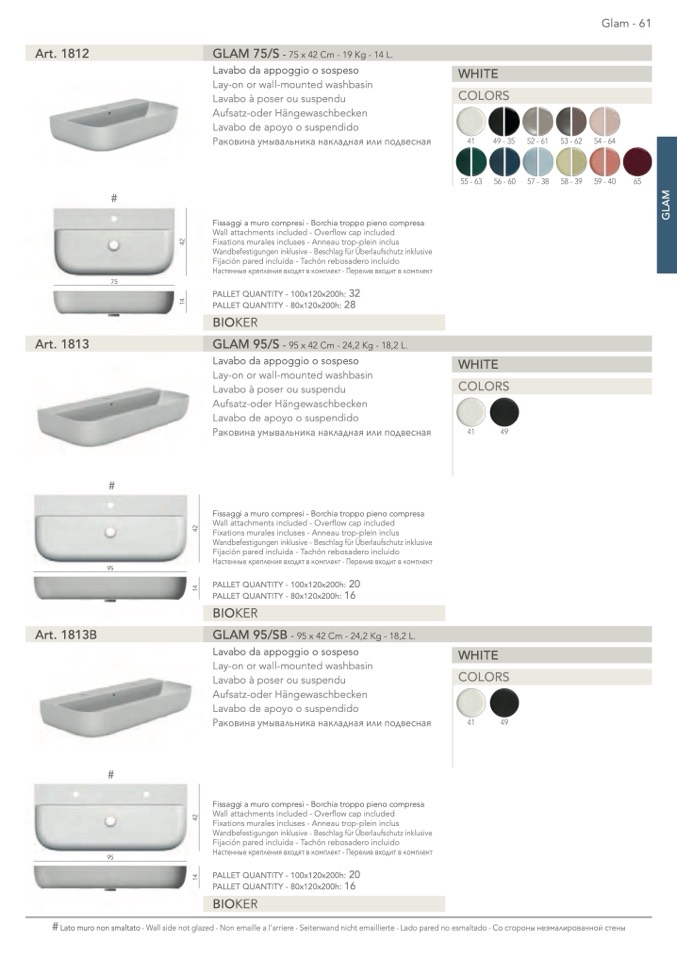 Lato muro non smaltato - Wall side not glazed - Non emaille a l’arriere - Seitenwand nicht emaillierte - Lado pared no esmaltado -