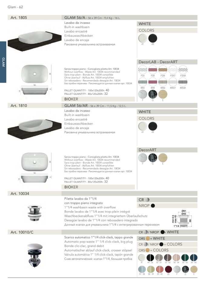Senza troppo pieno - Consigliata piletta Art. 10034
