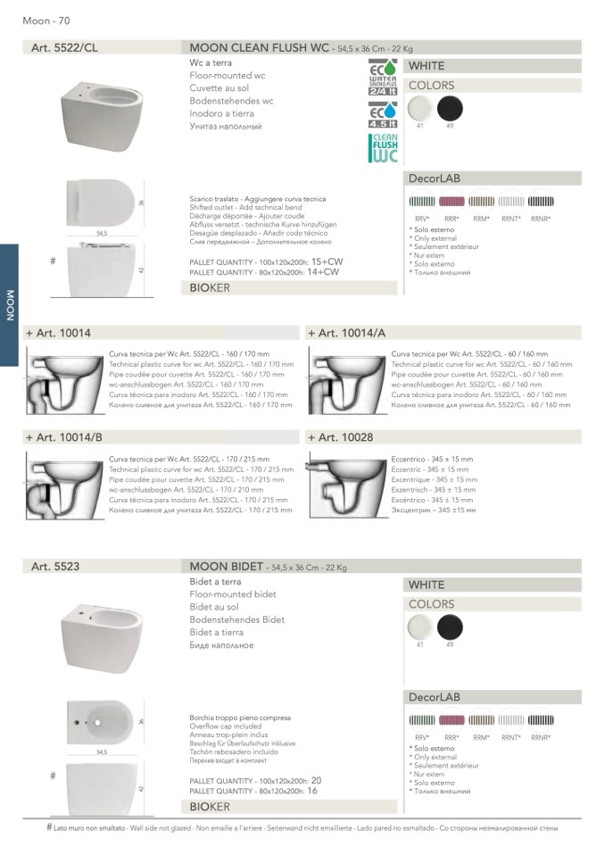Curva tecnica per Wc Art. 5522/CL - 160 / 170 mm