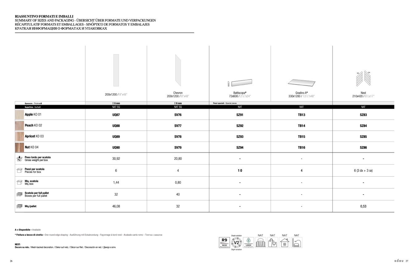 * Finitura a becco di civetta - One-round edge shaping - Ausführung mit Eckabrundung - Façonnage