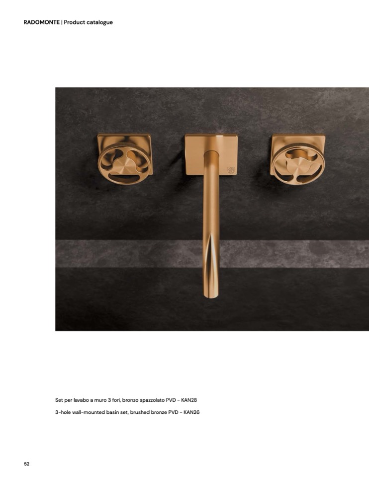 Set per lavabo a muro 3 fori, bronzo spazzolato PVD - KAN28