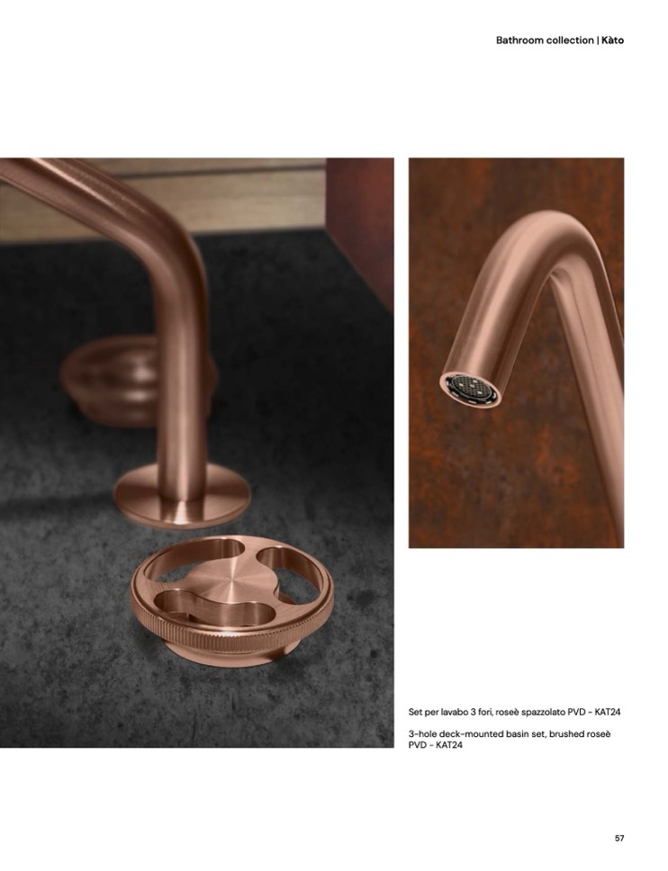 Set per lavabo 3 fori, roseè spazzolato PVD - KAT24
