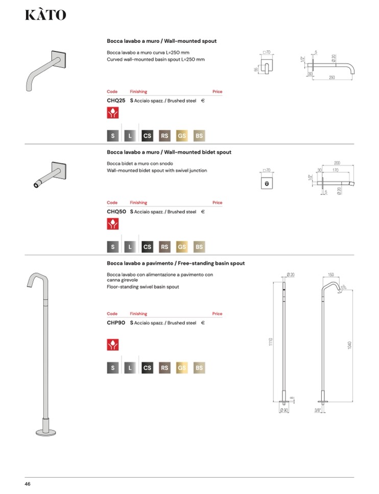 Bocca lavabo a muro / Wall-mounted bidet spout
