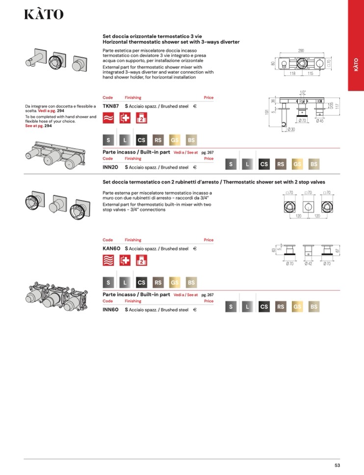 Set doccia termostatico con 2 rubinetti d’arresto / Thermostatic shower set with 2 stop valves