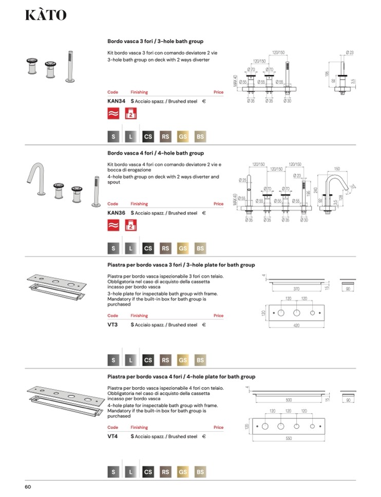 Piastra per bordo vasca 4 fori / 4-hole plate for bath group