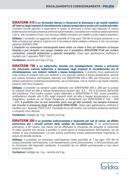 può essere immesso nell’impianto abbinato con IDRATERM 240 o 280, per rimuovere, con la