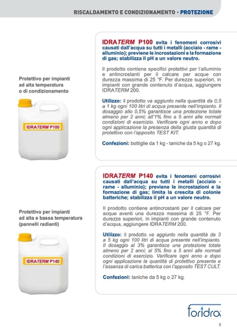 a 5 kg ogni 100 litri di acqua presente nell’impianto.