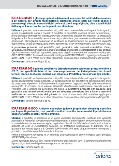 IDRATERM P100 o P140, per evitare i fenomeni corrosivi e/o la decomposizione del glicole.