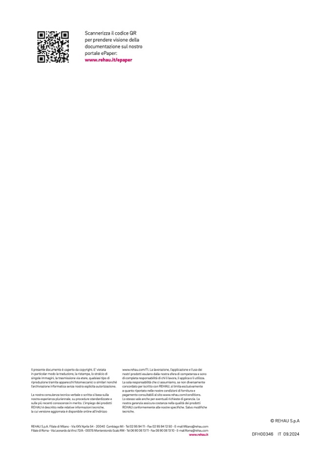REHAU S.p.A. Filiale di Milano - Via XXV Aprile 54 - 20040 Cambiago MI - Tel 02 95 94 11 - Fax 02 95 94 12 50 - E-mail Milano@rehau.com