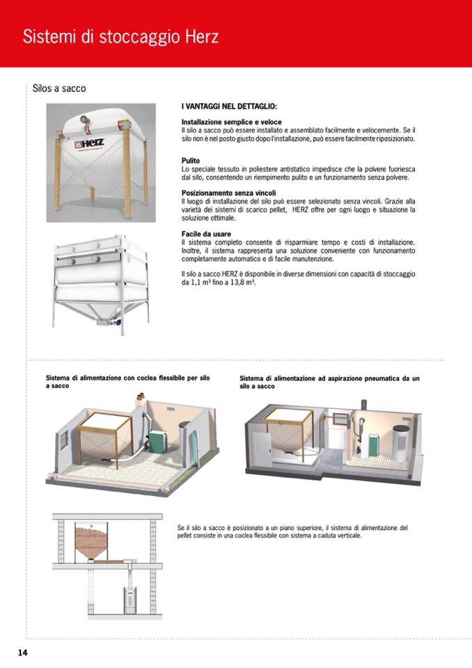 varietà dei sistemi di scarico pellet, HERZ offre per ogni luogo e situazione la