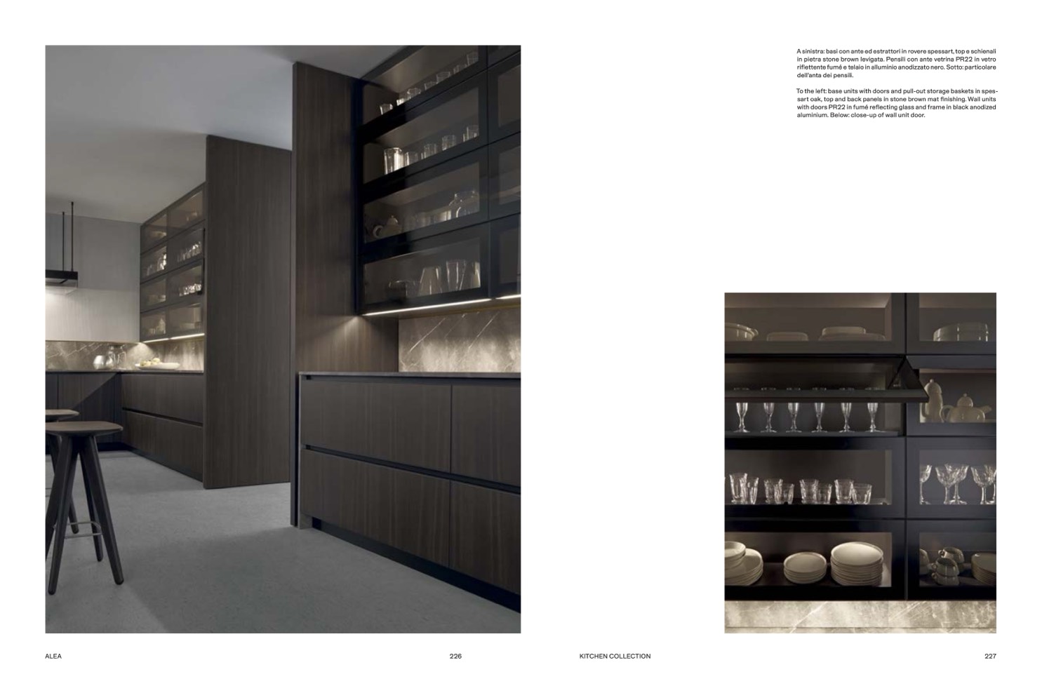 in pietra stone brown levigata. Pensili con ante vetrina PR22 in vetro