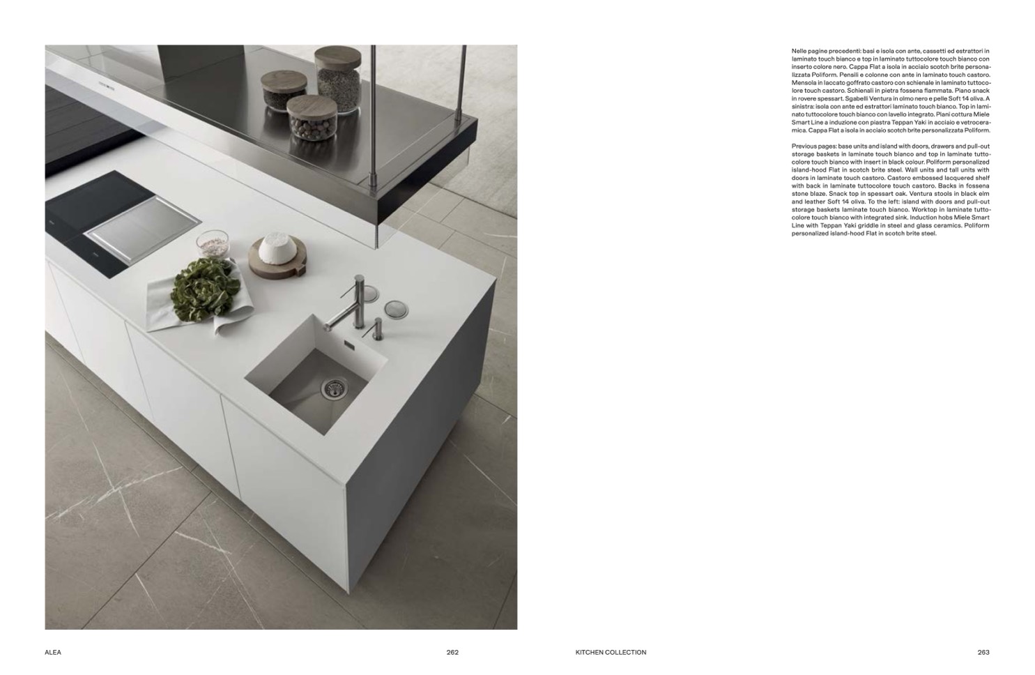 Nelle pagine precedenti: basi e isola con ante, cassetti ed estrattori in