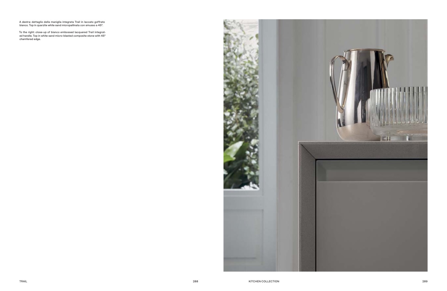 A destra: dettaglio della maniglia integrata Trail in laccato goffrato