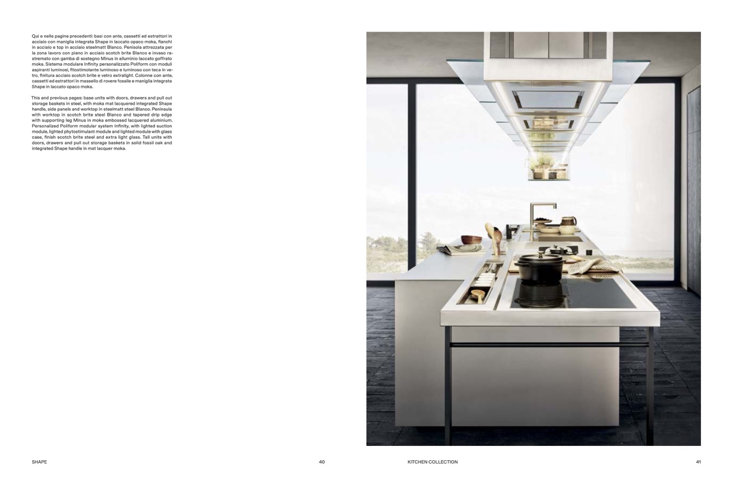 tro, finitura acciaio scotch brite e vetro extralight. Colonne con ante,